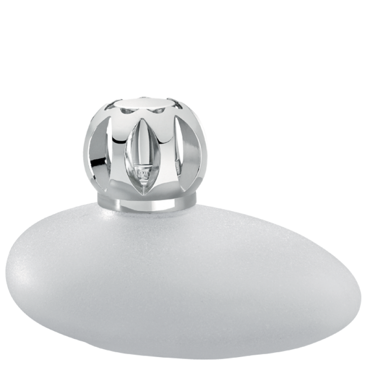 Come un sasso, questa lampada in vetro laccato è ideale per un interno zen, riposante e naturale. Coprifiamma a palla in zamac argento brillante. Disponibile in due colori : grigio e bianco. Lampada venduta in cofanetto con un bruciatore catalitico, un tappino di spegnimento e un imbutino.