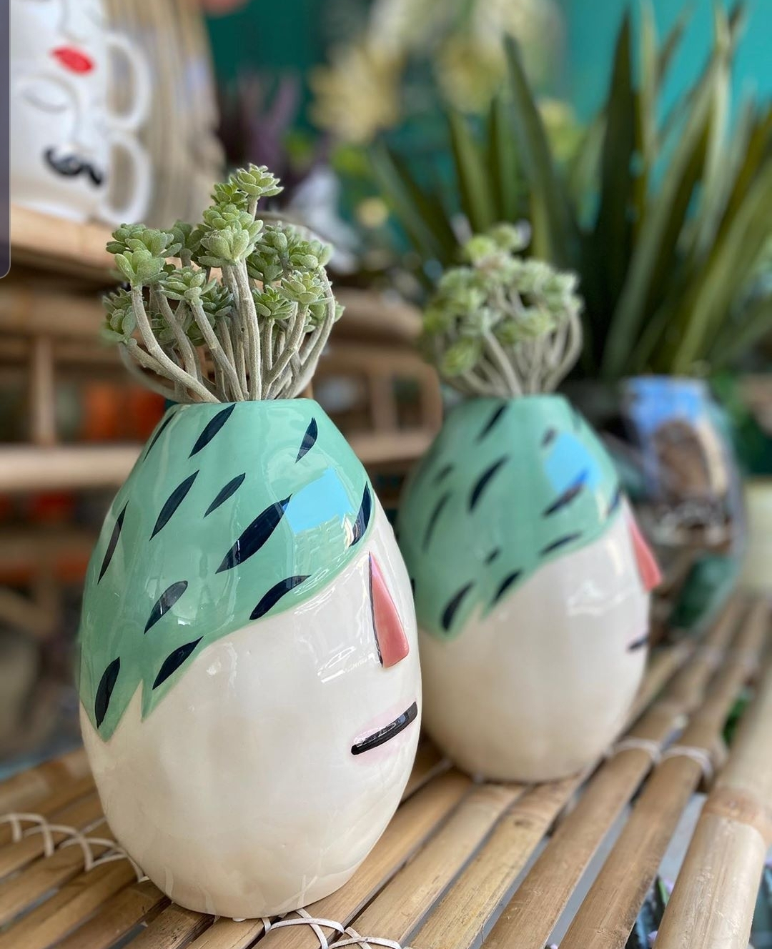 Splendidi vasi in ceramica con varie raffigurazioni di visi stilizzate e colorate, diventano oggetti d'arte da abbinare ai colori della casa, ideale per fare un regalo !!