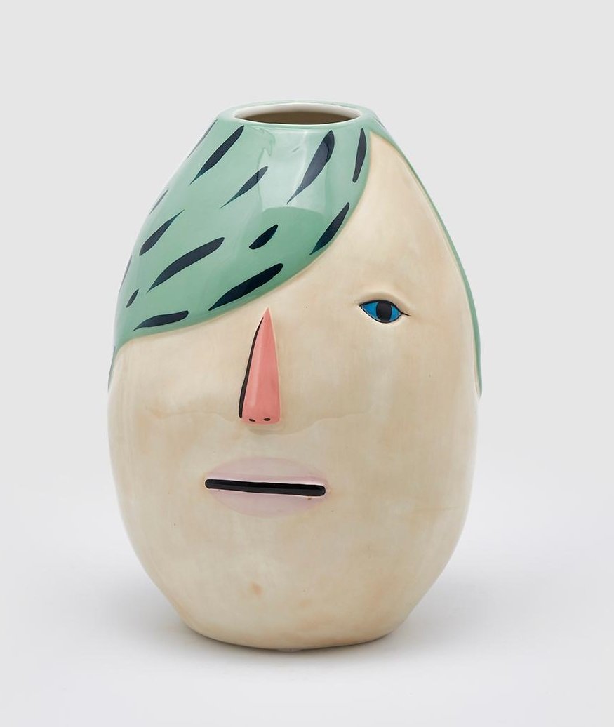 Vaso Ceramica grande viso capelli verdi