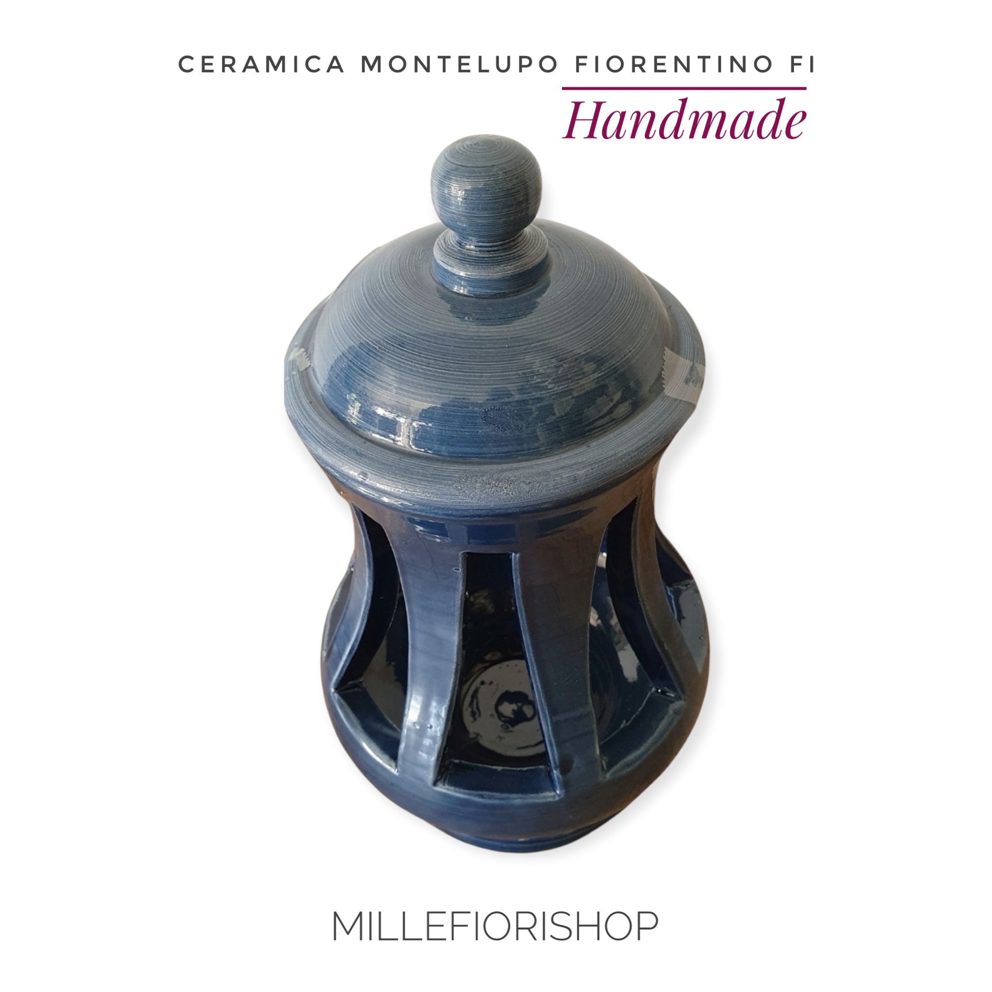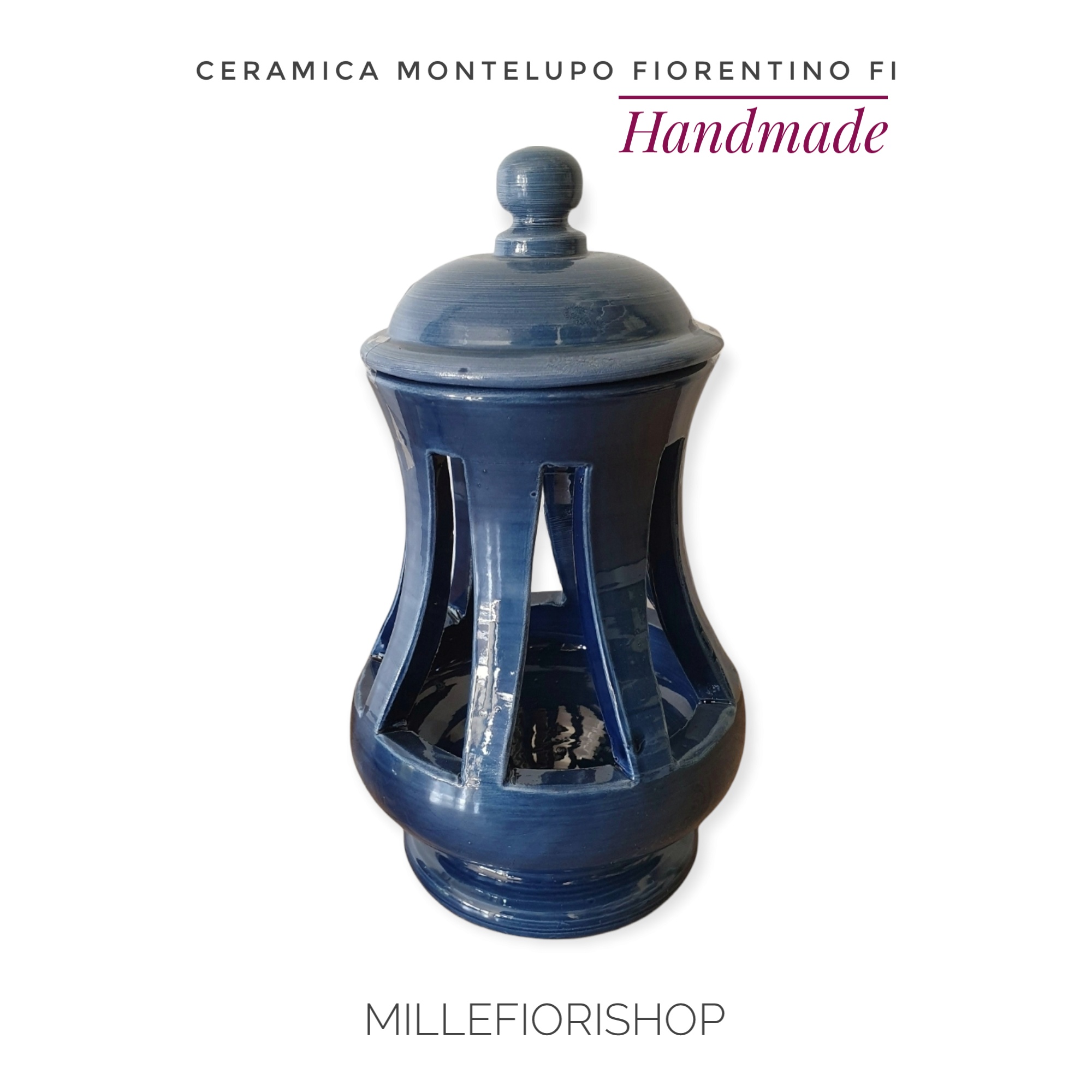 Lanterna ceramica Toscana Montelupo con coperchio blu