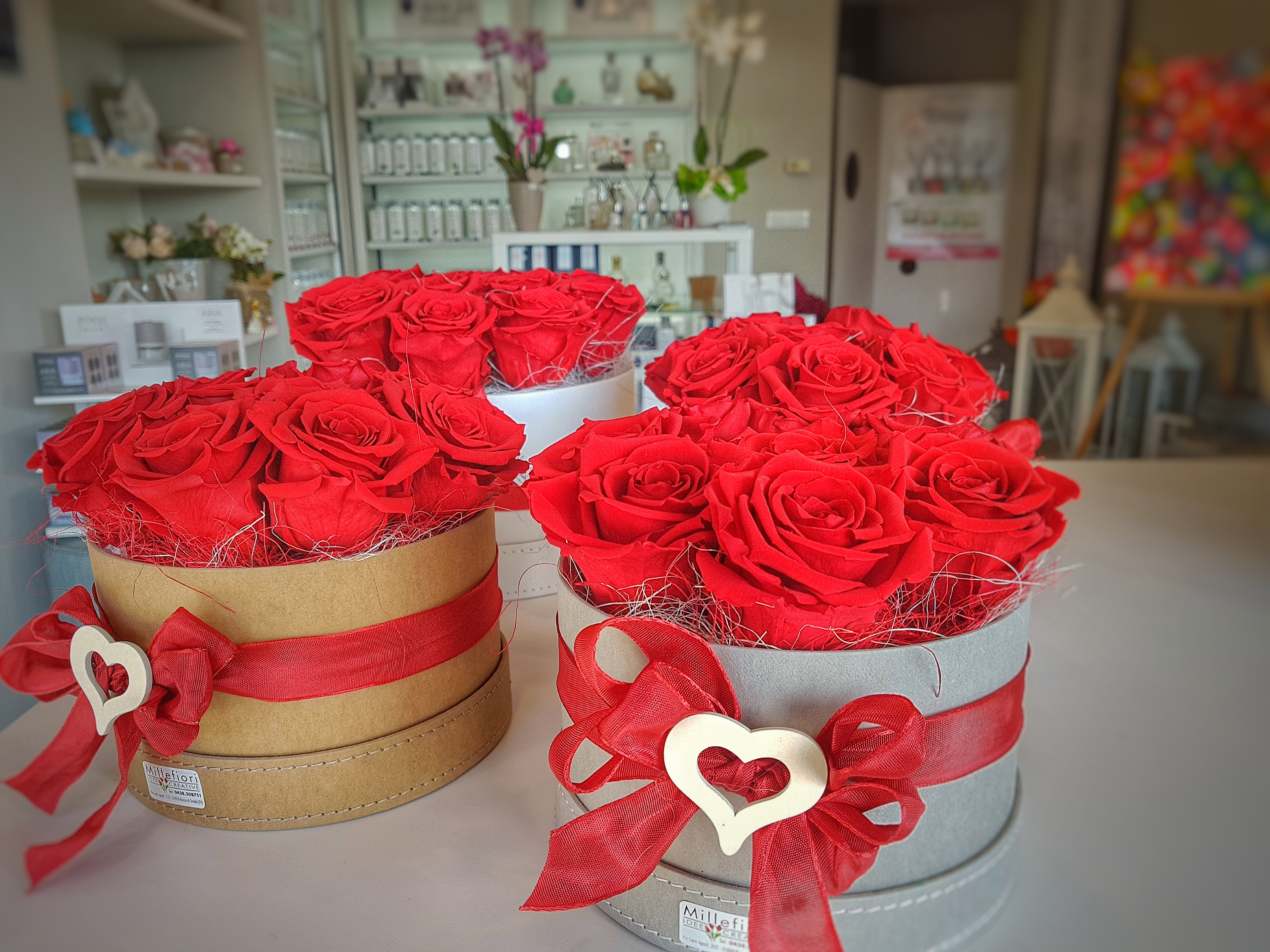 Le nostre Flower Box sono realizzate con rose rosse stabilizzate che hanno durata diversi mesi, inserite al'interno di una scatola.