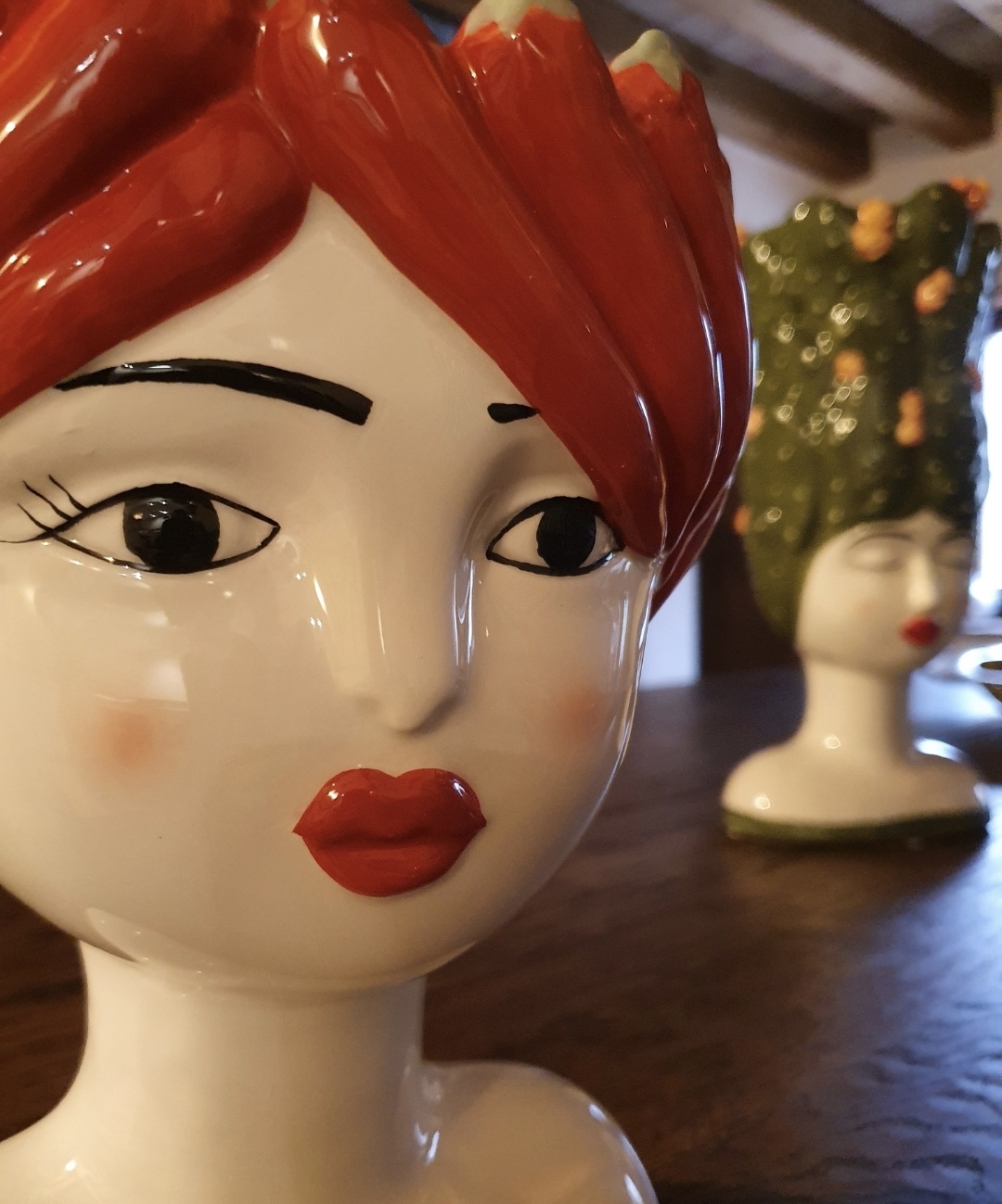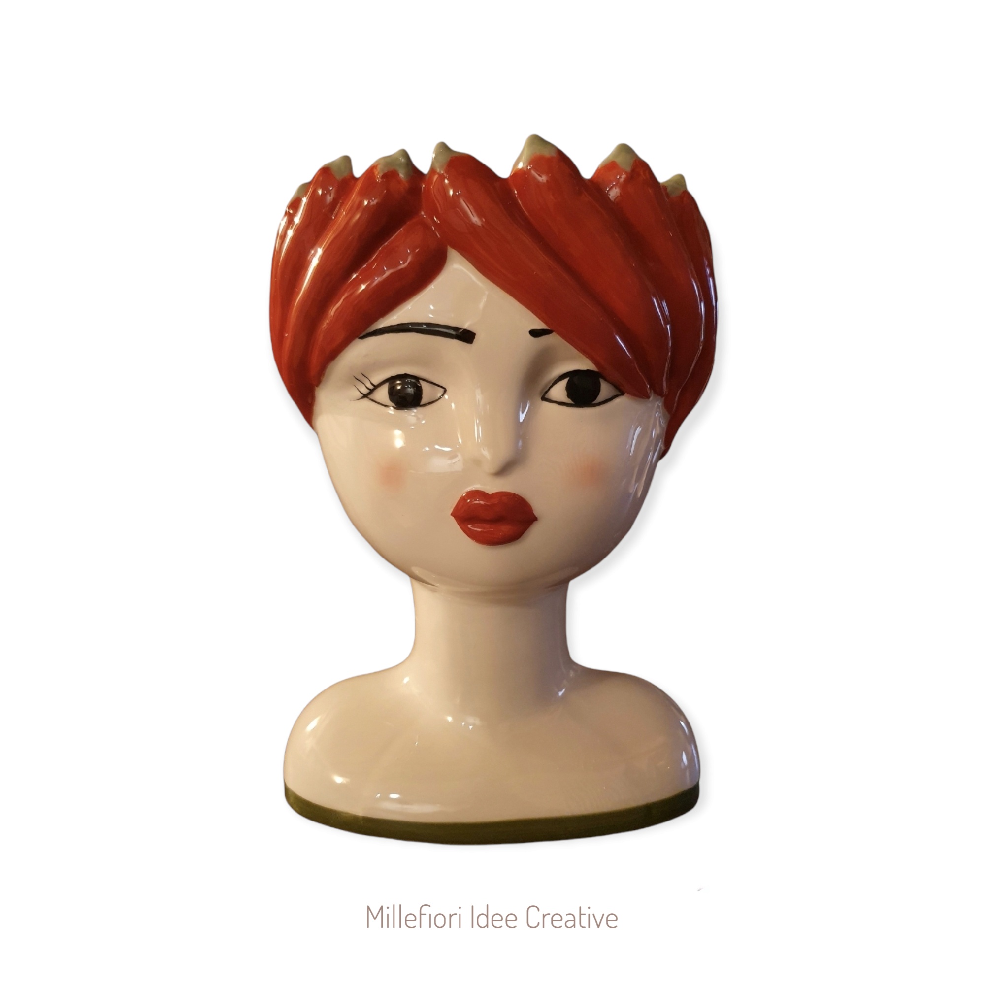 Splendidi vasi in ceramica dal design unico e ben rifinito, raffiguranti visi stilizzati, la parte superiore può essere abbellita con piante grasse o fiori freschi , diventeranno i capelli, e l'effetto sarà garantito.