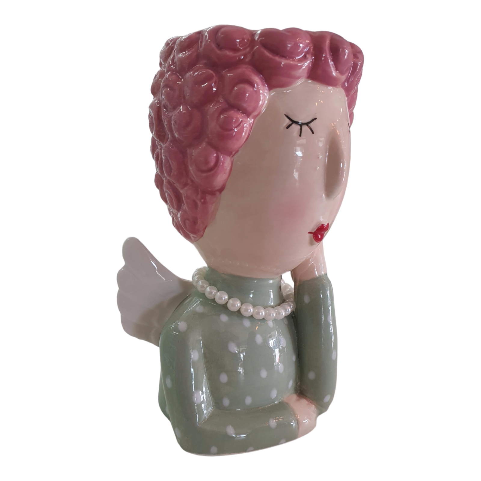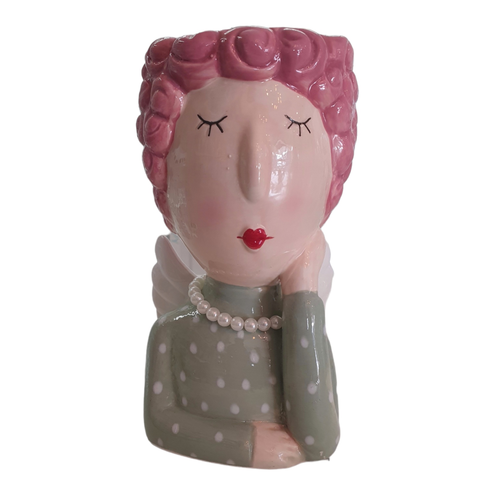 vaso in ceramica dal design unico e ben rifinito, raffiguranti un busto stilizzato, la parte superiore può essere abbellita con piante grasse o fiori freschi , diventeranno i capelli, e l'effetto sarà garantito.